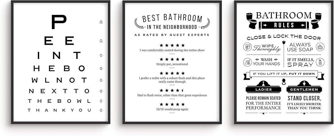 10 funny bathroom signs you will want in your bathroom. Employees, visitors, and customers require to have clear signage of where your restrooms are located. Bathroom definitions funny bathroom signs set of 4 prints, deja poo, karma, bathroom, shower, bathroom wall decor, minimalist wall art. Some of the most reviewed products in wall signs are the stratton home decor wash, brush, comb bath art (set of 3) with 29 reviews and the stupell industries 12 in. Stupell home decor cotton delivery truck bathroom plaque wall art reg. A glossy acrylic layer gives the sign a clean, professional look. A funny sign, perfectly placed can really help ease the tension if you get my drift! Most of the bathroom signs in this post are available to purchase, so you can put that vinyl and wood away and simply add it to the cart. Bathroom door sign, bathroom humor, farm house decor, rustic decor, country home decor, bathroom sign, kids bathroom, christmas, gifts dalvinsbaubles 5 out of 5 stars (694) sale price $19.49 $ 19.49 $ 25.99 original price $25.99 (25% off. I don't know why i'm writing this, to be honest. Well, i do know why. Free shipping on orders over $25 shipped by amazon. Bathroom script wood sign home decor wall art unfinished charlie 12 x 3 4.2 out of 5 stars 1,166.